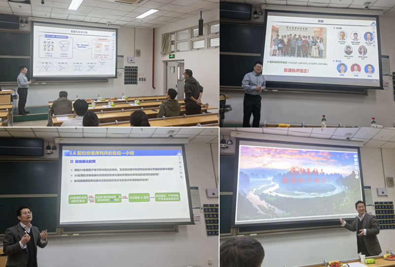 张伟雄教授现任中山大学教授、博士生导师,化学成人a片 副院长,主持承担面上项目、优青项目、联合基金重点项目等多项国家自然科学基金项目,现兼任含能材料全国重点实验室学术委员、中国化学会第31届理事会青年委员、广东省化学会第9届委员会常任理事。他围绕多离子集成含能材料的设计理念、构筑方法、性能及应用等问题,系统介绍了其团队在离子型杂化材料与含能材料领域的代表性成果。张教授重点阐述了如何通过阴离子导向组装实现新型含能材料的创新设计,并展示了创制的无需硝化、易于放大生产、兼具军民应用潜力的多离子集成含能材料体系。报告还介绍了其团队构建的从基础研究到应用转化的全链条单质炸药创新体系的相关进展,其中典型化合物已实现吨级量产,其关键技术在关键领域已完成工程化应用。他的报告充分体现了基础研究与工程转化紧密衔接的鲜明特色,也为在场师生理解功能材料从实验室研究走向实际应用提供了重要启发。