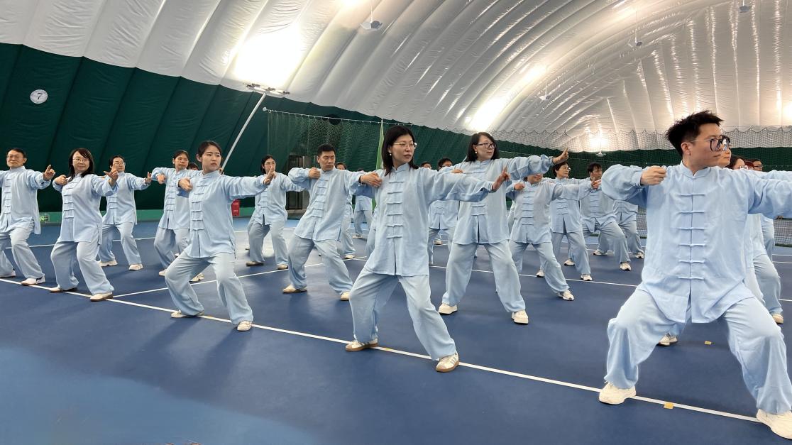 成人a片 工会接到比赛通知后迅速响应,利用此契机积极动员教职工开展八段锦练习,并从其中组建起30人的参赛队伍。每周组织老师们集中训练,形成固定“工间操时间”,促进大家强身健体,强化健康理念,提升文化自信。训练中,参赛队员们相互纠正动作细节,反复打磨招式衔接,凝聚起强大的团队合力。