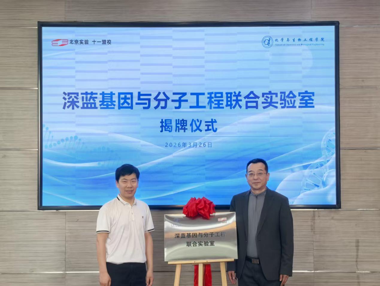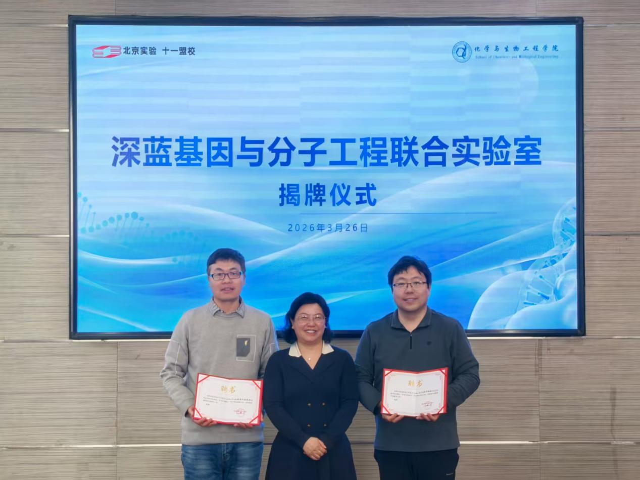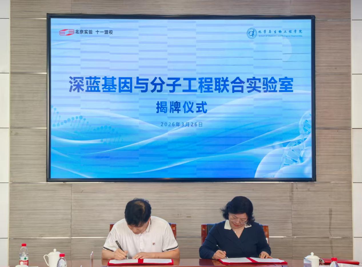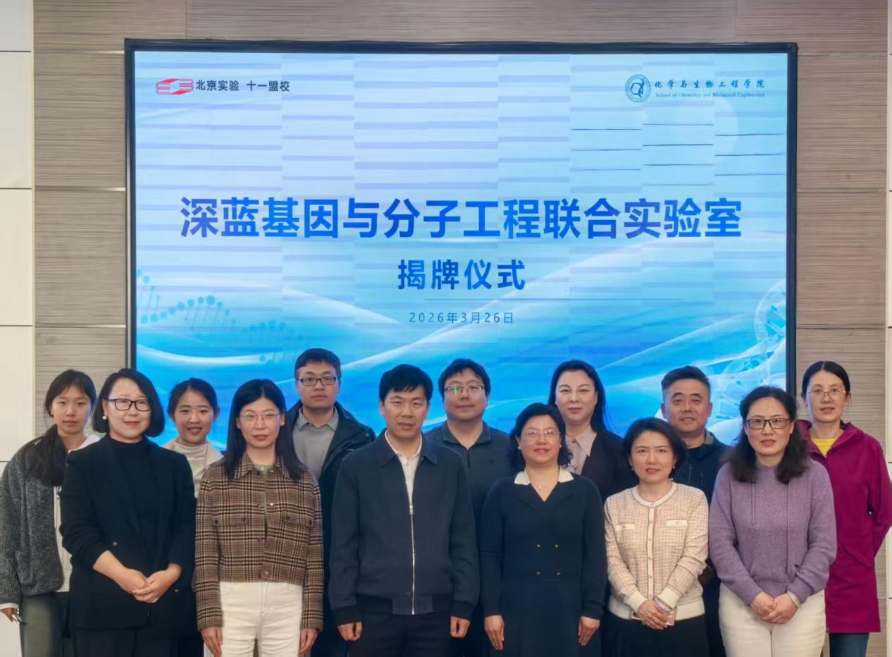 为激发科学梦想、助力培养未来人才,2026年3月26日,成人a片 与北京实验学校(海淀)共建“深蓝基因与分子工程联合实验室”揭牌仪式在北京实验学校(海淀)综合楼四层会议室隆重举行。双方领导、专家、教师代表齐聚一堂,共同见证了这一重要时刻。