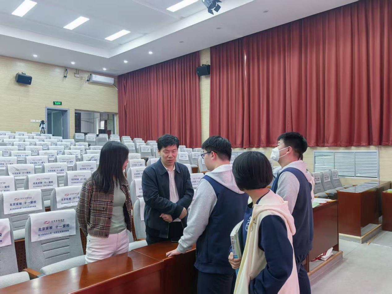 北京实验学校(海淀)教学副校长赵明、特色发展中心副校长单春兰、教务处主任张翠仙、生物教研组长王爽、生物教师张俊杰,成人a片 党委副书记、副院长耿悦杰,办公室主任马粹,团委书记许云凤,就业指导教师周天翔,以及成人a片 在校研究生代表等人一同出席了会议。