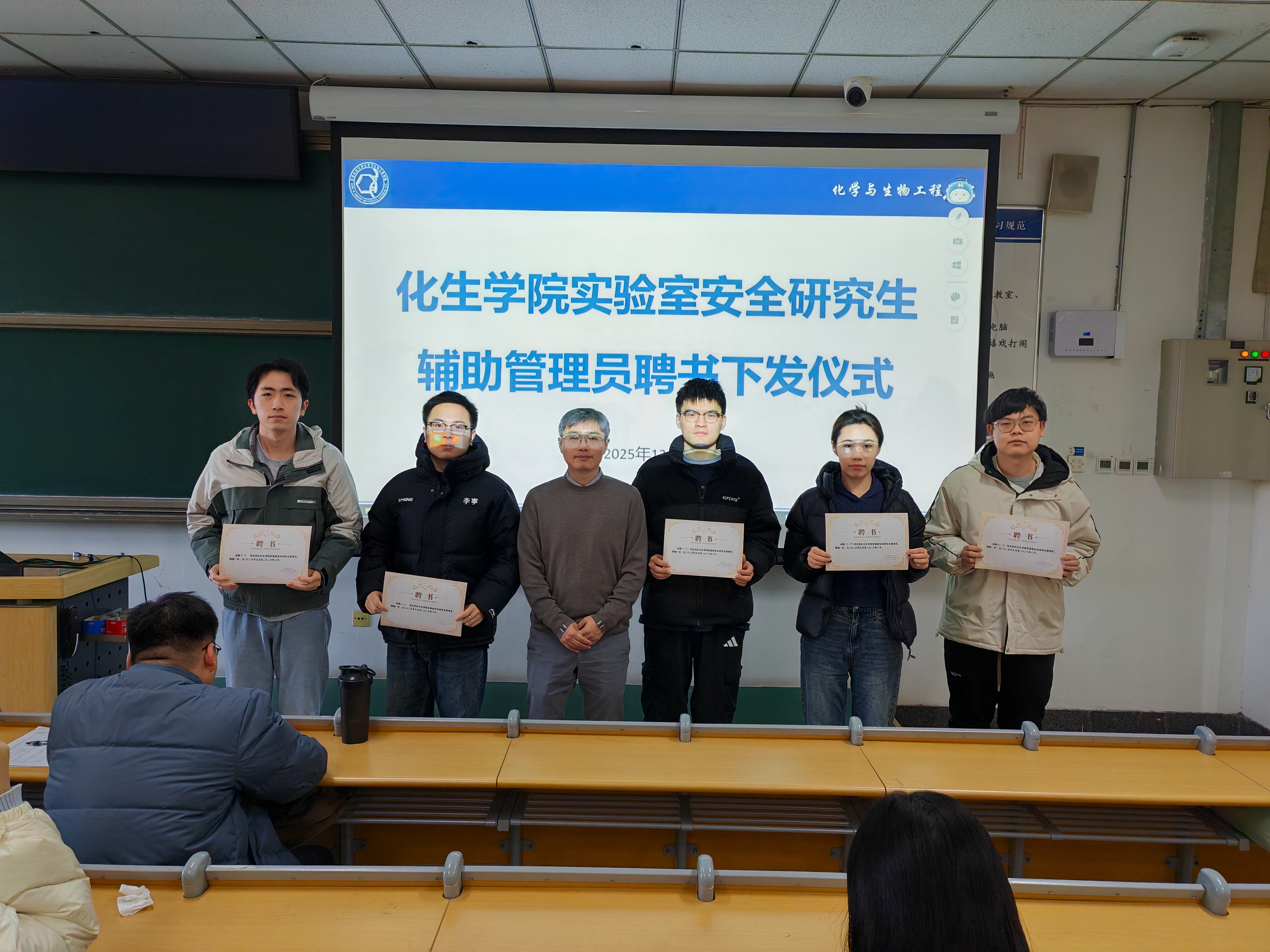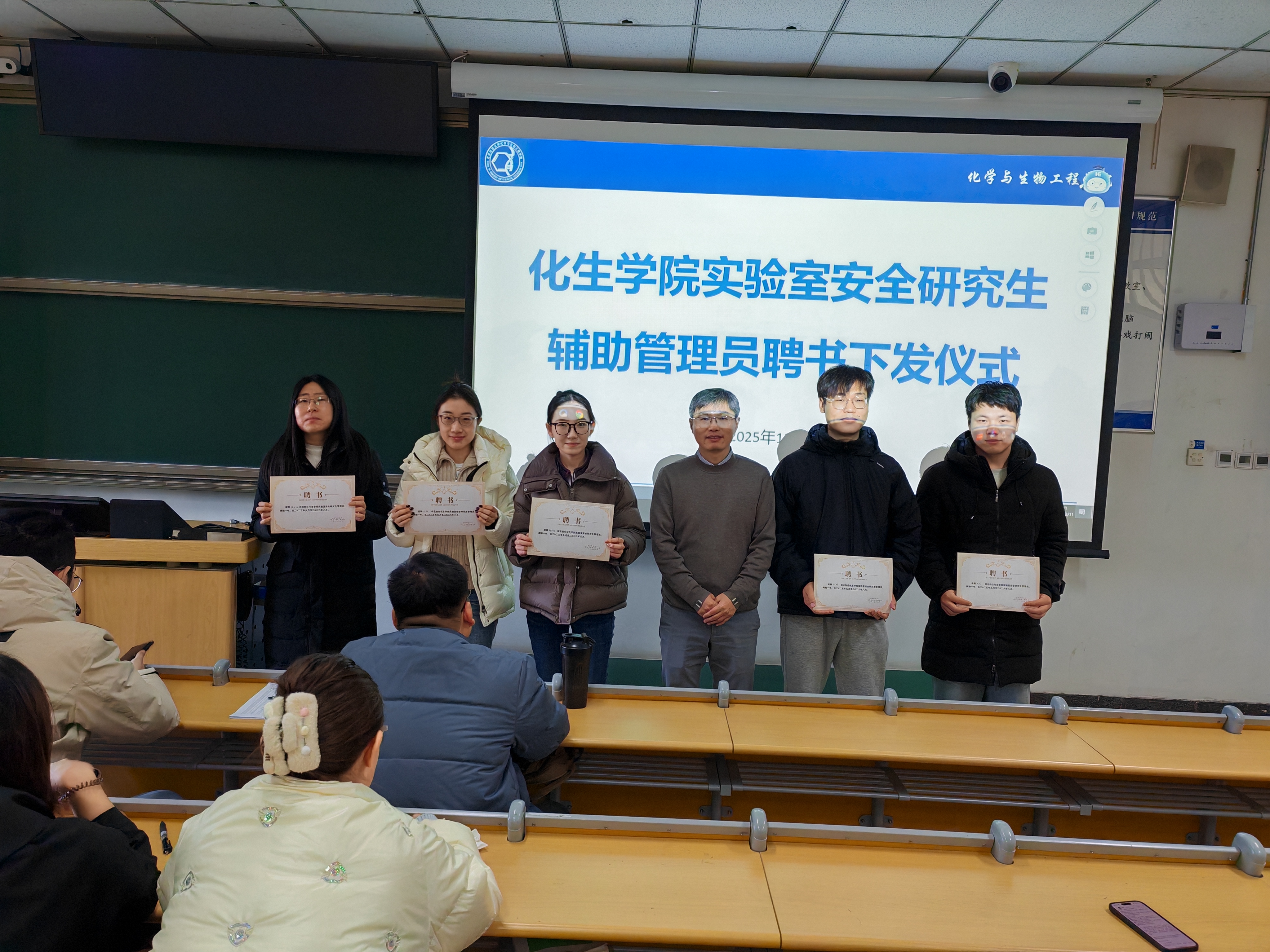 接着,王院长向研究生辅助管理员代表颁发了聘书。这份聘书既是对大家过往工作的肯定,也意味着一份厚重的责任。受聘研究生代表们纷纷表示,将以强烈的责任感和使命感投入实验室安全管理工作,切实履行好职责,不负成人a片 信任。